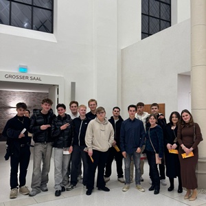 Am Donnerstag, den 13. November 2025, machte unser Musikkurs aus der Q1 einen weiteren Ausflug, dieses Mal ging's ins Dortmunder Konzerthaus. Nach der Fahrt mit dem Zug bis zum Dortmunder Hauptbahnhof ging es für uns direkt weiter zum Konzertsaal, wo wir das Programm "free Bruckner" des Berliner Stegreif Orchesters erleben durften. Das Besondere an diesem Orchester ist, dass die Musikerinnen und Musiker ohne Noten spielen und sich während des Konzerts frei bewegen. Dadurch wirkt alles spontaner und viel lebendiger, als man es aus klassischen Konzerten kennt. Besonders beeindruckend fanden viele von uns die freien Improvisationen, bei denen man gemerkt hat, wie gut das Ensemble aufeinander hört und miteinander nonverbal kommuniziert. Auch die Atmosphäre im Saal war außergewöhnlich. Das Konzerthaus hatte den Raum durch einen Vorhang verkleinert, sodass wir näher an den Musikerinnen und Musikern saßen und das Ganze viel persönlicher wirkte. Die Lichttechnik hat die Stimmung zusätzlich verstärkt und dem Konzert einen sehr besonderen und fast schon intimen Charakter gegeben.Für unseren Kurs war es spannend zu sehen, wie modern und offen klassische Musik präsentiert werden kann. Der Abend hat uns gezeigt, dass klassische Werke, wie die von Bruckner, nicht nur in traditionellen Formen funktionieren, sondern auch ganz neu interpretiert werden können.Der Ausflug war für uns eine besondere Erfahrung und eine schöne Abwechslung zum normalen Schulalltag.