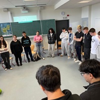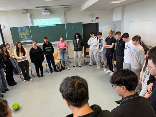 Mit viel Energie und pädagogischem Geschick führte Frau Kroner durch interaktive Aktivitäten und Spiele, welche die Jugendlichen zum Mitmachen animierten. Ganz ohne Leistungsdruck konnten die Schülerinnen und Schüler Französisch auf eine neue, ungezwungene Weise entdecken und erleben. Dabei standen vor allem Motivation und Freude an der Sprache im Mittelpunkt – ein Ansatz, der bei den Klassen auf große Begeisterung stieß.