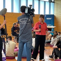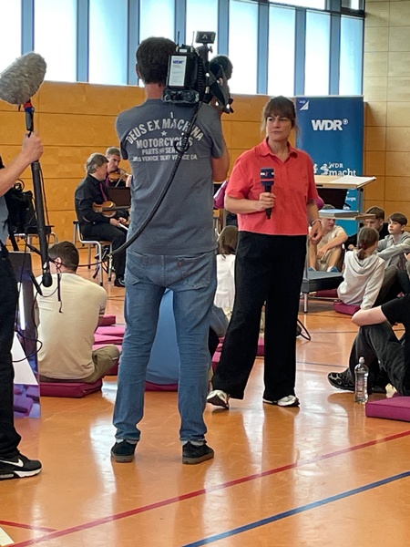 Auch die wrd-lokalzeit Bergisches Land war bei Musik-Battle dabei, Jenny von Massow als Live-Reporterin interviewte Schüler:innen während des Konzertes. Der Beitrag war am selben Abend in der Lokalzeit zu sehen: hier bitte klicken.