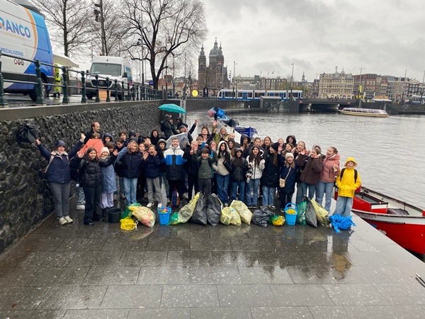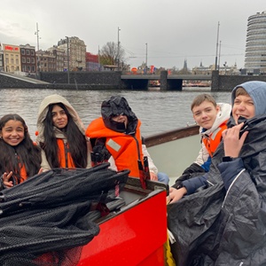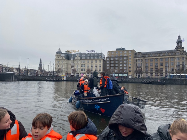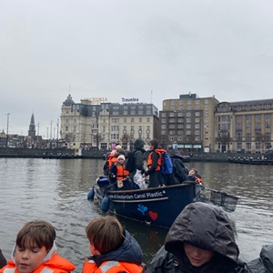 Wieder arbeiteten wir in gemischten Gruppen. Ein Teil des Programms war eine Bootstour, bei der wir Müll aus den Grachten fischten. In fünf kleinen Booten sammelten wir Plastik, Dosen und anderen Abfall. Trotz Regen machte es Spaß, und wir merkten, wie wichtig es ist, die Umwelt zu schützen – besonders in einer so schönen Stadt wie Amsterdam.