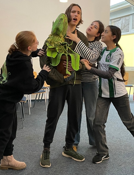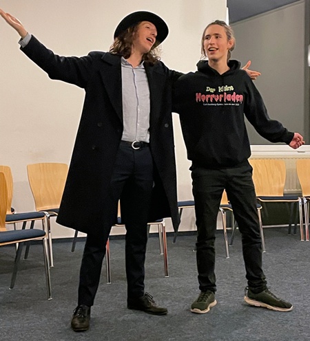 Die beiden halfen uns vor allem, die Choreografien zu den großen Stücken des "Kleinen Horrorladens" zu ändern, zu synchronisieren und zu perfektionieren. Aber auch an Tipps, wie man seine Bühnenpräsenz stärkt, Fokus gibt oder nimmt und wie man Emotionen besser rüberbringen kann, hat es nicht gemangelt.