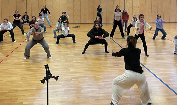 In den Tag starteten wir meist mit einem qualvollen HIIT (High-Intensity-Interval-Training) zum Lied „Run Boy Run“ und weiteren fürs Schauspielern üblichen Aufwärmübungen. Anschließend wurden die großen Choreografien, bei denen das gesamte Ensemble mitmacht, in der Turnhalle eingeübt. Danach wurde meist parallel an verschiedenen Szenen gearbeitet, um die Effektivität zu steigern. Damit sich das Wochenende auch lohnte, probten wir von morgens 9:30 Uhr bis abends 21 Uhr durch. Natürlich hatten wir zwischendurch auch Essenspausen zu den spezifischen Zeiten der Jugendherberge. Das Essen dort war sehr gut; man hatte eine angemessen große und gesunde Auswahl.